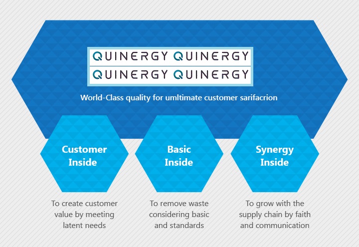 Everyone at QUINERGY will implement above quality management policy and achieve customer satisfaction and management objectives while maximizing the value of the company.